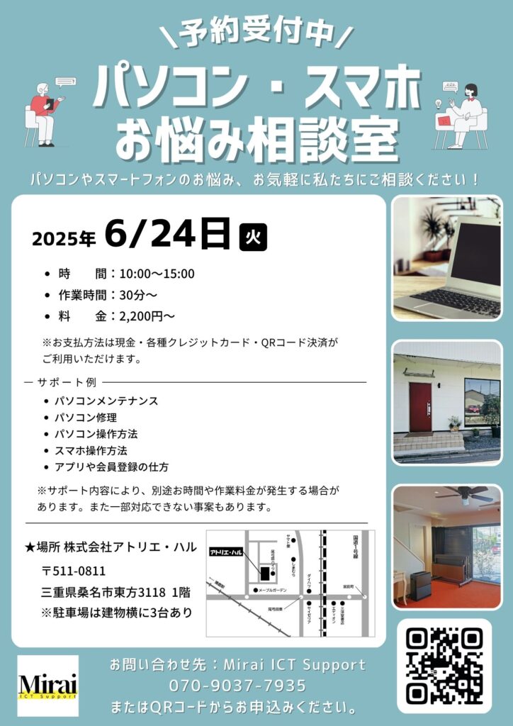 パソコン・スマホに関してのご相談を承っております。愛知県・三重県にお住いの方、個人のお客様、法人のお客様まで幅広くサポートさせていただきます。相談無料!パソコン・スマートフォンの操作方法に関するお悩みや、設定のについてのお悩みなど、まずはお気軽にご相談ください!